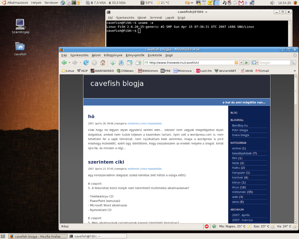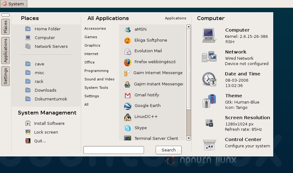 nos… nem nagyon akart összejönni ez a frissítés. az egész rendszer elég furán viselkedett, a Transmission (szinte) minden kattintásra kilépett, forrásból nem tudtam lefordítani semmit, mert azt írta, hogy nem talál c compiler-t (ami fel volt telepítve), és még egyéb apróságok. így úgy döntöttem, hogy letöltöm a cd-t és felrakom újra az egész rendszert. nem nagy érvágás, mindenképpen szerettem volna, mert az apt továbbra is lassú volt, és úgy gondoltam, hogy az előző telepítésben valami nem jól lett beállítva. ami persze hülyeség, mert most is lassú, és már más is írta, hogy nála is van ez a probléma. 🙁 szóval nem értem. aztán amik elsőre szembetűnőek: fájlmegosztás, ha egy könyvtárat meg akarok osztani, akkor amikor kiválasztanám, hogy SMB vagy NFS, ott megfagy, és jön a Bug Buddy Tool, hogy hiba történt, és küldjem a jelentést. a Firefox is elég gyakran megadja magát, bár az is béta még, de szerencsére ha újra elindítom, folytathatom ott ahol megfagyott. a Transmission pedig ugyan úgy nem jó. ha a beállításokat akarom előhozni, kilép, ha torrentet akarok hozzáadni, akkor is. nem értem miért, még dapper alatt fordítottam, ott jó volt. majd próbálok egyet itt fordítani, hátha úgy jó lesz. és ami még vicces, hogy a hálózati beállításokkal is gond van. Potn mesélte, hogy átállította, és utána nem lehetett visszaállítani, csak ifconfig-gal. 🙂 én ezek után hozzá sem merek nyúlni… 😀 erősen béta a rendszer, persze ez nem baj, mert friss, ropogós, és különben is jó látni, ahogy napról napra fejlődik, jobb lesz és stabilabb. csak az apt ne lenne olyan lassú. 🙁 ha naponta 20-30-40 megát le kell tölteni, az nem lesz valami jó móka…