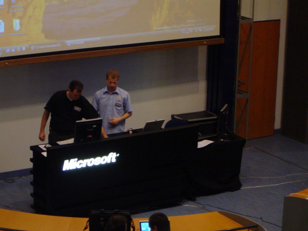 egész kellemesen telt ez a három nap, annak ellenére, hogy microsoft termékekkel kapcsolatos előadásokat néztünk meg. volt Windows Vista, Office 2007, Live termékek, Longhorn szerver, Virtual Server, ISA Server és még sok más okosság. és igen… Linux is volt, mint téma. 🙂 igen meglepő volt, bár nem volt olyan érdekes, kicsit az volt az érzésem, mintha megmondták volna a srácnak, hogy ezt és ezt mondhatod, mást nem. valószínüleg rosszul gondolom. az első nap késtünk egy kicsit, mivel picit nehezen találtunk oda a szállásra, aztán a villamos is ledöglött, de nem volt gáz, még időben voltunk. regisztrációnál kaptunk egy ‘Windows 2000 – A rendszergazda zsebkönyve’ című könyvet, és egy MS pólót. 🙂 az épület elég korrekt volt, modern, igényes. a három napot kellően elökörködtük, de nagyon hurkák voltunk, mert egyetlen egy üveg sört ittunk összesen… hihetetlen… első nap volt egy nagy marcipán torta is, amit szépen elosztottak a több mint 100 ember között. aztán mozi, Üvegtigris 2. ingyen kóla és chipsz… nagyon jó volt. 🙂 laborgyakorlaton ISA Server-t konfigoltunk, Beninek sikerült is lefagyasztania… 😀